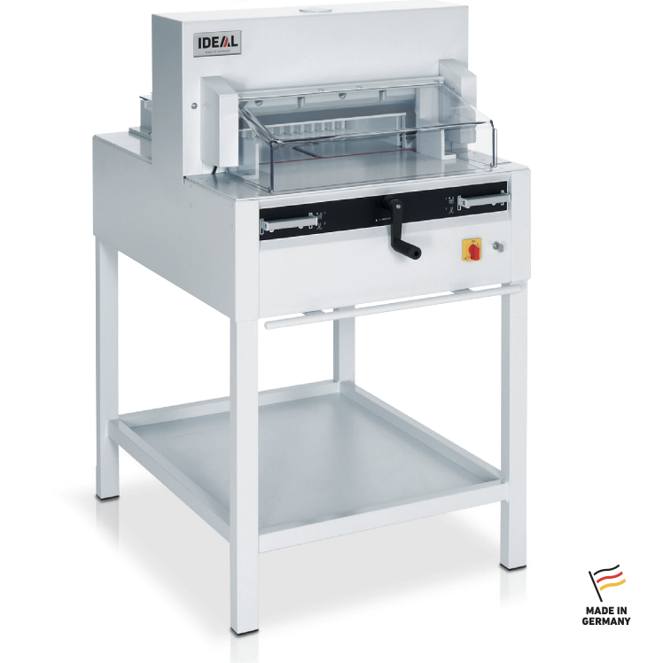 Massicot électrique avec EASY-CUT, pression manuelle par volant et longueur de coupe de 475 mm.