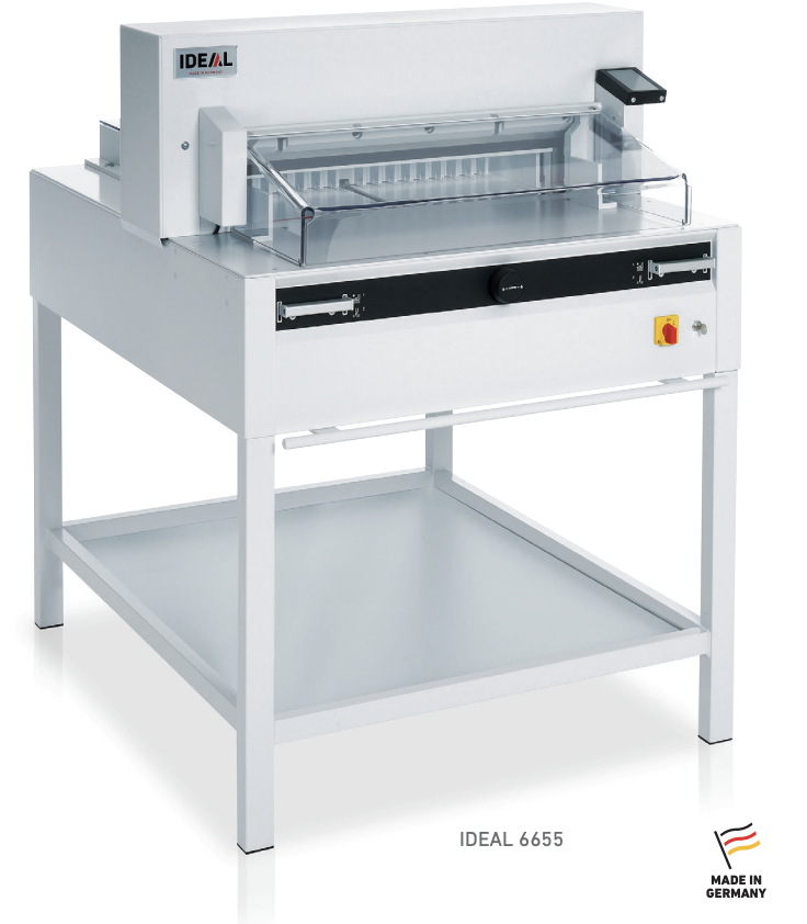 Massicot électrique avec EASY-CUT et système de pression automatique – pour une coupe particulièrement confortable des formats jusqu’au A3.