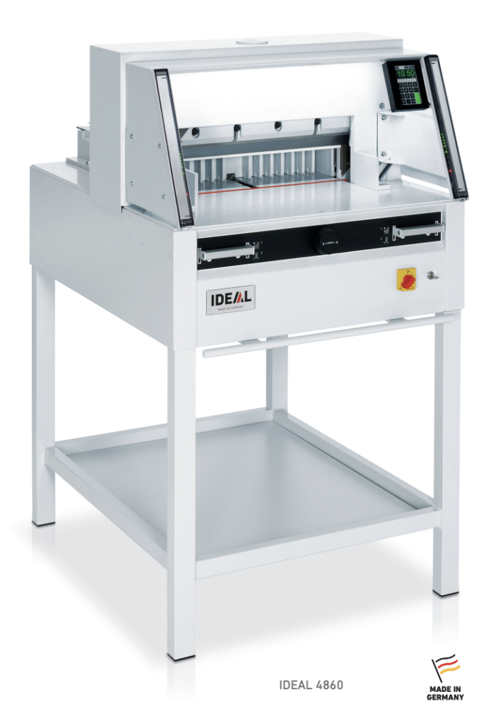 Massicot électrique avec EASY-CUT, pression automatique, écran de commande tactile pour le réglage de la butée arrière et longueur de coupe de 475 mm.