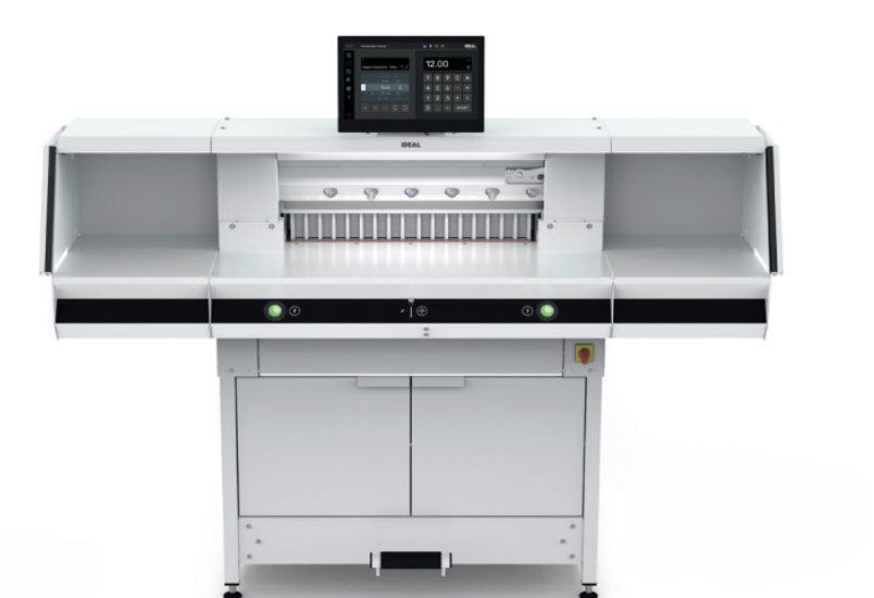 Deux massicots programmables de dernière génération pour une efficacité et une productivité accrues. Avec barrage immatériel et pression hydraulique.